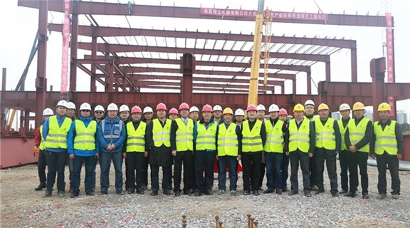 After the tense construction of more than three months, the steel structure beam raising ceremony for the "NHEC high-capacity compressors production capacity transfer & reconstruction project" undertaken by the Company was conducted on March 8, 2018, when the steel structure beams of main factory building were successfully raised. Vice President Qi Yongyi of the Company and General Manager Jin Yunfeng of NHEC attended the beam raising ceremony. In addition, General Manager Li Meng of the Project Management Department, the leaders of Division IV and the project team members witnessed that stirring moment of milestone.