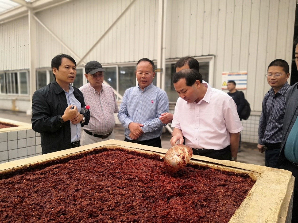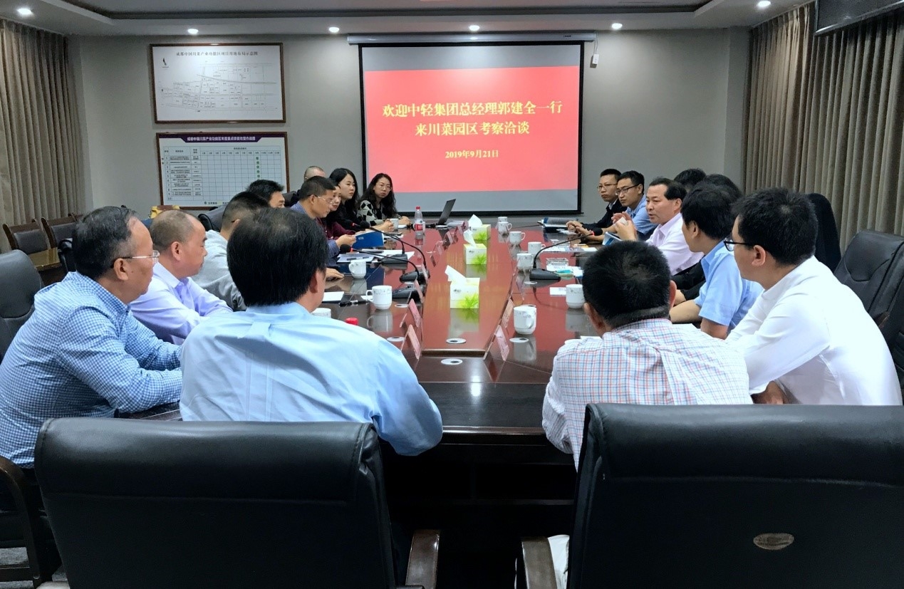 9月20日至22日,中轻集团总经理郭建全、食品院总经理董建辉等一行分别赴邛崃、郫都、什邡等地,考察了当地白酒、食品行业相关企业,并与当地政府、园区管委会等主要领导进行会谈。海诚股份中轻成都公司董事长崔玉琦、总经理王康健陪同考察。