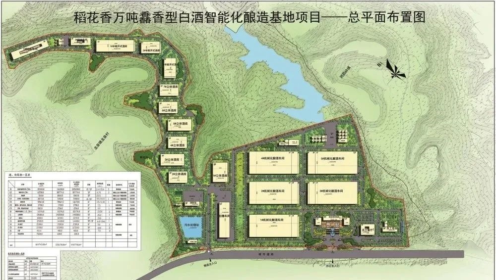 该项目选址宜昌市夷陵区龙泉镇,与稻花香酒业公司直线距离约1.5公里。计划总投资15.5亿元,建设周期两年。项目建设用地规模约742亩,拟建设5栋馫香型酿酒车间,窖池总量将达到6000口以上;拟建设基酒总存储量达10万吨的储酒罐区及立体酒库;配套建设制曲车间、原粮仓库、原粮处理车间、酿酒研究院等构筑物。投产达效后,预计每年可实现销售收入30亿元、创利税5亿元。