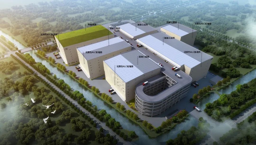 该项目占地面积118700㎡,建筑面积超过52万㎡,建筑高度达59米,是拥有国内最高容积率、最高建筑密度的工业建设项目之一。其6层高架输送平台高度就达46米。项目集生产加工、仓储、冷链物流于一体,建成后,会有数家国内中央厨房生产企业入住,成为辐射苏南大部、上海和浙江局部地区的冷链物流中心,预计产能可达冷链鲜食1800万盒/年,速冻中式面食6000吨/年,酱料包6000吨/年等,可实现年产值100亿元。