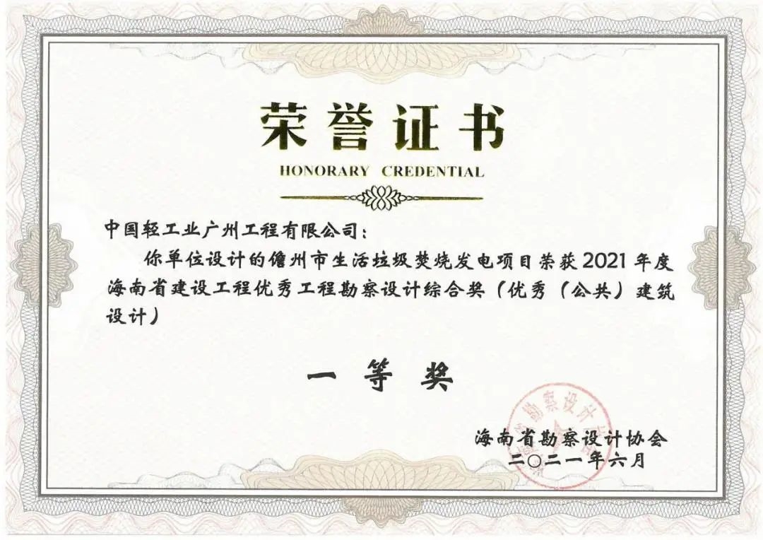 近日,海南省优秀工程勘察设计行业奖评选结果出炉,best365英国在线体育广州公司负责设计的“儋州市生活垃圾焚烧发电项目”荣获海南省建设工程优秀工程勘察设计综合奖(优秀(公共)建筑设计)一等奖。