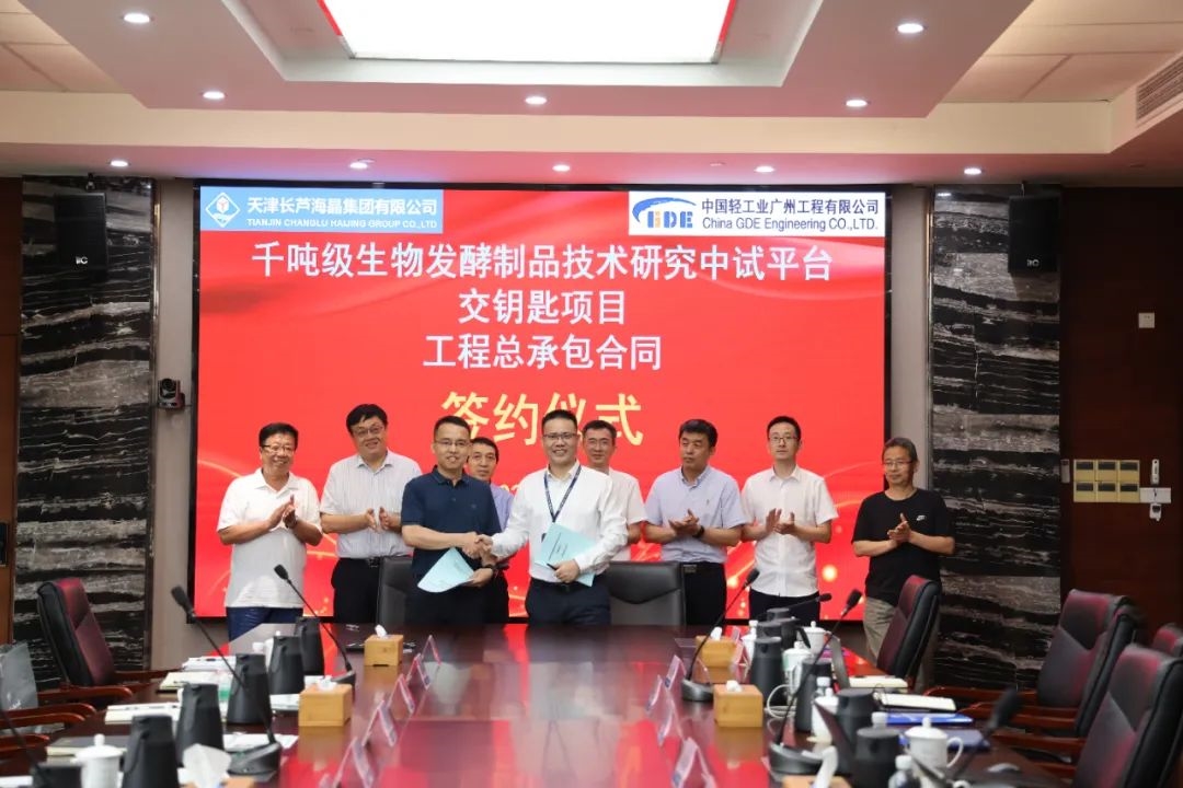 日前,天津渤海化工集团副总经理张宝春一行莅临best365英国在线体育所属中国轻工业广州工程有限公司(以下简称广州公司)考察并出席“千吨级生物发酵制品技术研究中试平台交钥匙项目”工程总承包合同的签约仪式,广州公司党委书记、董事长、总经理罗军代表公司与天津渤海化工集团签署总承包合同。