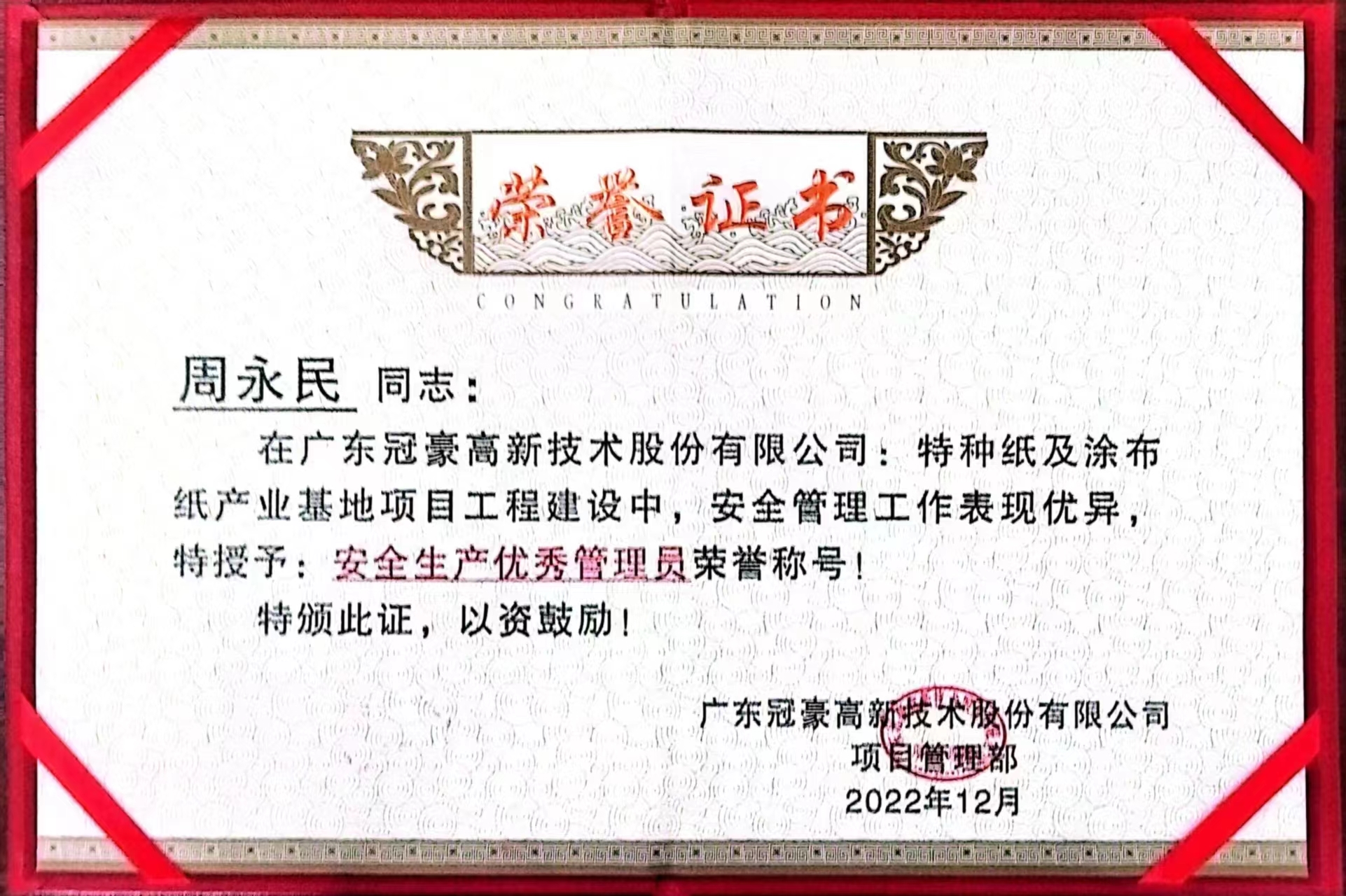 近期,best365英国在线体育广州公司总承包的昌吉生活垃圾焚烧发电项目部获得业主颁发的2022年度安全生产先进集体荣誉称号,马斌、祁红兵、郭长彬获得2022年度安全生产先进个人荣誉称号。
