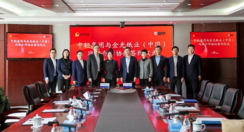 1月21日,保利中轻与金光纸业(中国)投资有限公司(简称“APP(中国)”)在北京签署战略合作协议。保利中轻党委副书记、总经理赵国昂,金光集团APP副总裁翟京丽代表双方签约,并就双方在科技研发、智能制造、市场拓展等方面深化合作展开交流。签约仪式由保利中轻副总经理孙波主持。