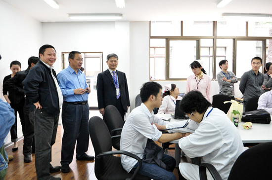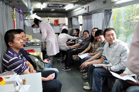 早上8:30起,报名参加献血的员工们就纷纷来到公司5101房间体检。9时许,第一批体检合格的员工踏上了献血车。公司领导胡小平、翁伟民、工会主席李农,以及各支部书记,部门领导都守候在献血车外,陪同慰问着这些慷慨捋袖的志愿者们。