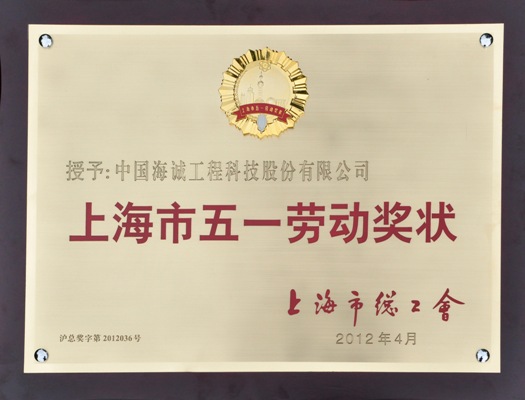 上海市“五一劳动奖状”是上海市总工会授予的在上海市各项建设事业中做出突出贡献的企事业单位、机关团体的光荣称号,是上海市工人阶级的最高奖项之一。海诚股份在轻工集团和公司党委的正确领导下,近年来积极响应中央和上海市委“转方式、调结构、促发展”的号召,以科学发展观为指导,公司全体干部员工辛勤工作,奋力拼搏,业绩始终保持稳步增长,营业收入从2003年的4亿元跃升至2011年的40亿元,实现了历史性的跨越。公司在转型发展的同时,也将创和谐、求稳定、促发展贯穿于企业各项工作中,实现了维护职工合法权益和推动企业健康发展“双赢”。