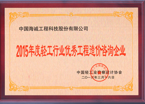 公司荣获“轻工行业优秀造价咨询企业”荣誉称号