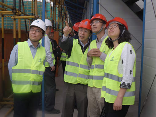 听取汇报后,领导们前往施工现场实地检查。领导们对现场安全管理的有序、规范给予了高度肯定。随同检查的业主也对项目团队工作表示了感谢。