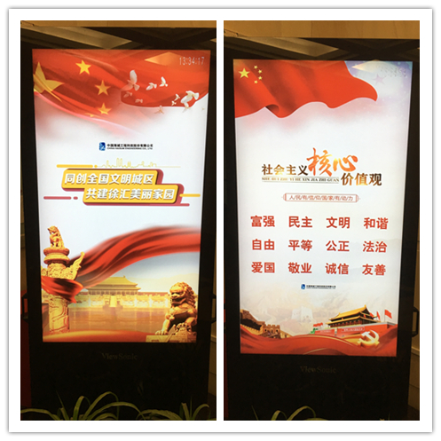 公司党委办公室和总裁办还通过公司一号楼的电子屏幕对社会主义核心价值观等文明创建内容进行了宣传。