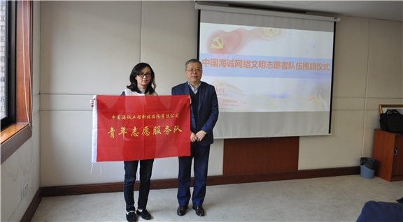 仪式上,徐大同书记亲自为 公司团委的“青年志愿者服务队”代表授旗。