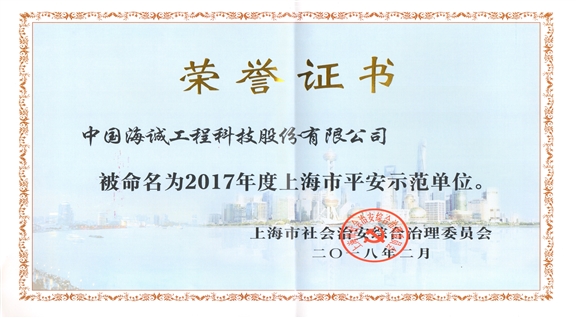 日前,上海市综治委下发通知,对本市在平安创建活动中表现突出的单位进行表彰,我公司获评“2017年度上海市平安示范单位”。