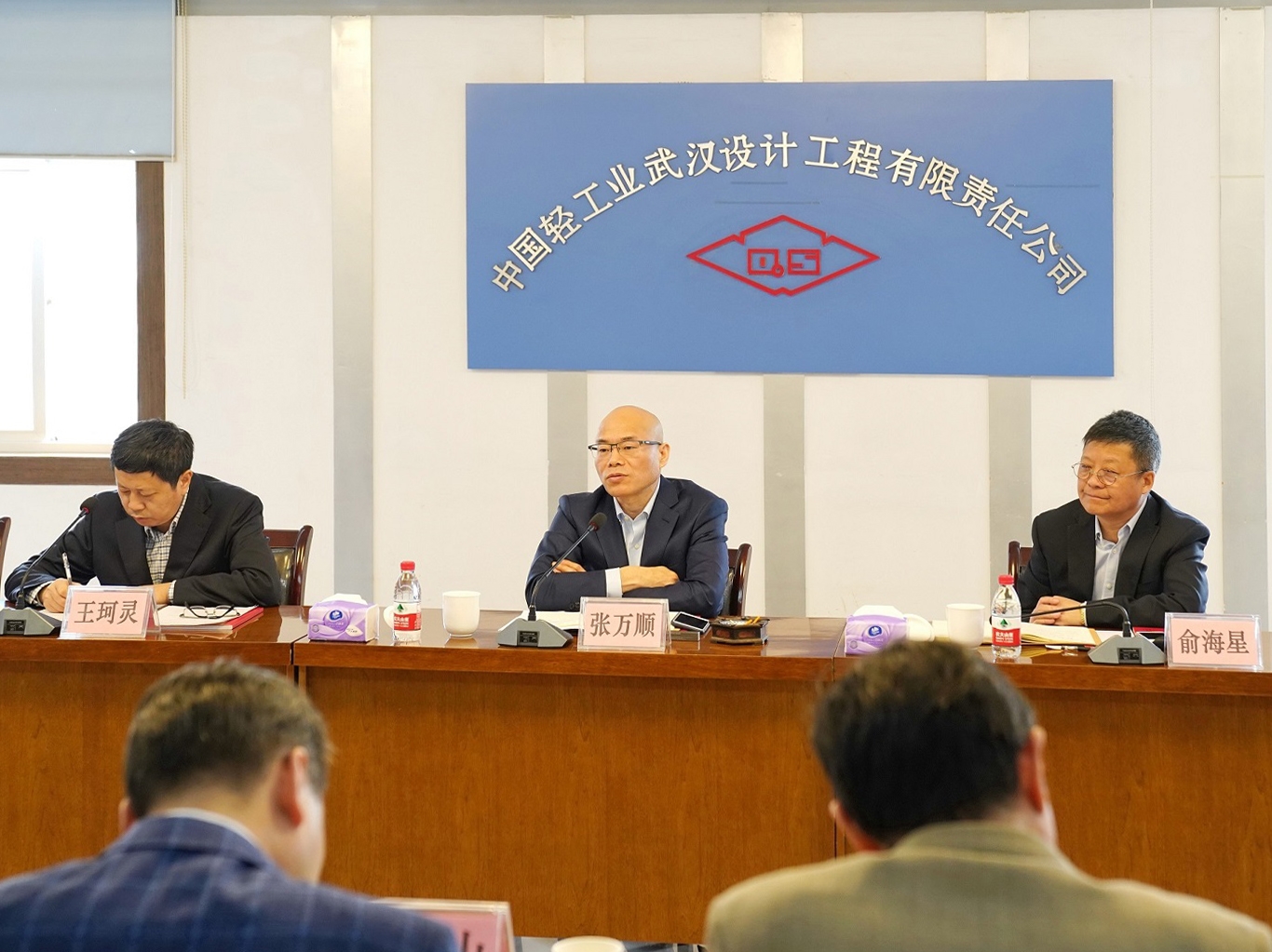4月16日,中轻集团党委书记、董事长张万顺,党委副书记、常务副总经理俞海星,党委副书记王珂灵,总会计师段赵清,总经理助理肖金龙等一行9人莅临海诚股份武汉公司调研指导工作。