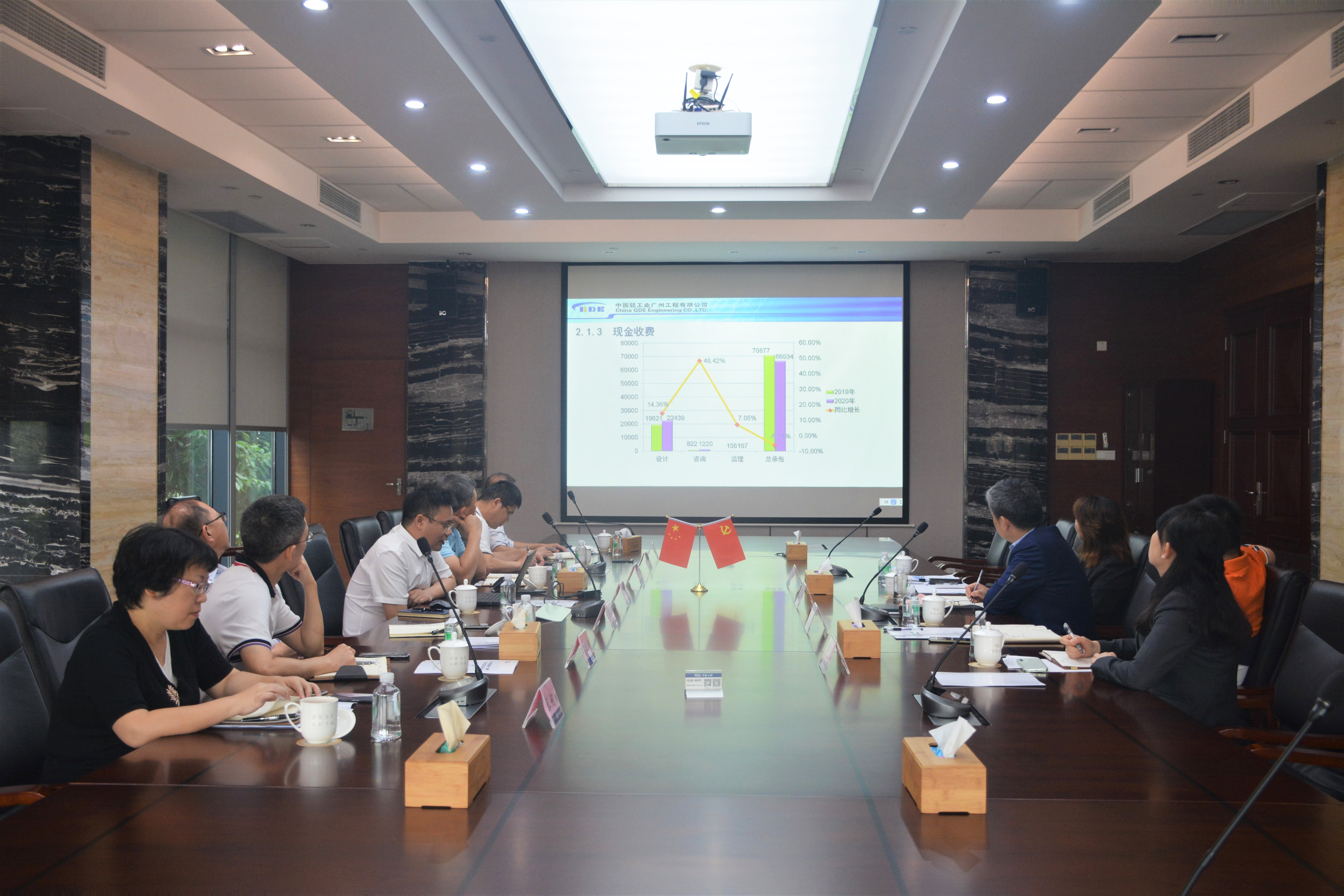 广州公司党委书记、总经理罗军向股份领导一行详细汇报了新领导班子的分工调整、生产经营、重大总承包项目实施、安全生产、人力资源以及技术创新等工作完成情况。罗军还着重汇报了2021年度广州公司围绕“快速发展”一个中心、“坚持六项发展基本原则”和“改革创新”两个基本点”的工作设想。最后,罗军代表广州公司领导班子表态,要在股份公司领导下积极创新求变,实现广州公司跨越发展。