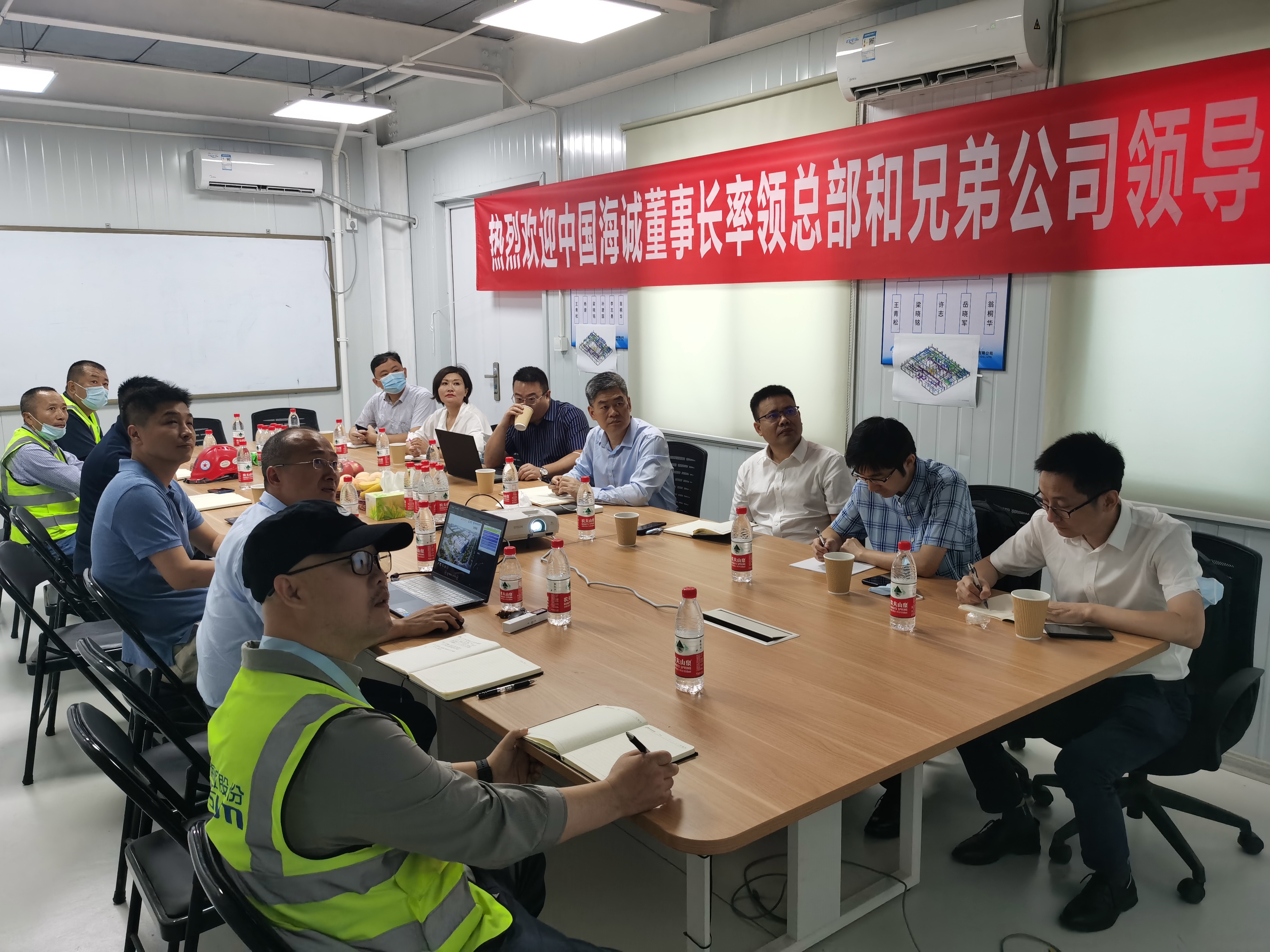 赵国昂一行听取了本部总经理助理应超、项目经理潘新等对项目概况、前期谈判和项目现状等详细汇报。赵国昂对项目团队离乡背井,高温下坚守项目表示了慰问,对本部在化工涂料行业取得的成果表示了肯定,强调要在保证安全的情况下确保工程进度,提高抗风险能力。作为EPC承包方,要坚持以客户为中心,发挥海诚专业特长,充分为客户考虑,提供超值服务,打响海诚品牌,培育市场,锻炼团队。