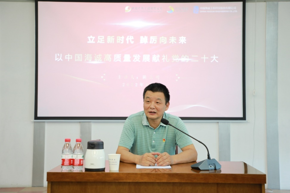 8月15日,公司党委委员、副总裁陈志明为武汉公司党委班子、中层及以上党员干部、骨干党员等讲授专题党课。陈志明还结合武汉公司实际,就下一步工作提出了具体要求:要聚焦落实五个年的工作部署,聚焦生产经营、创新发展的重点难点问题,以新发展理念引领落实,以科学机制保障落实,以担当作为推动落实,保持永不懈怠的精神状态和一往无前的奋斗姿态,以实际行动迎接党的二十大胜利召开。