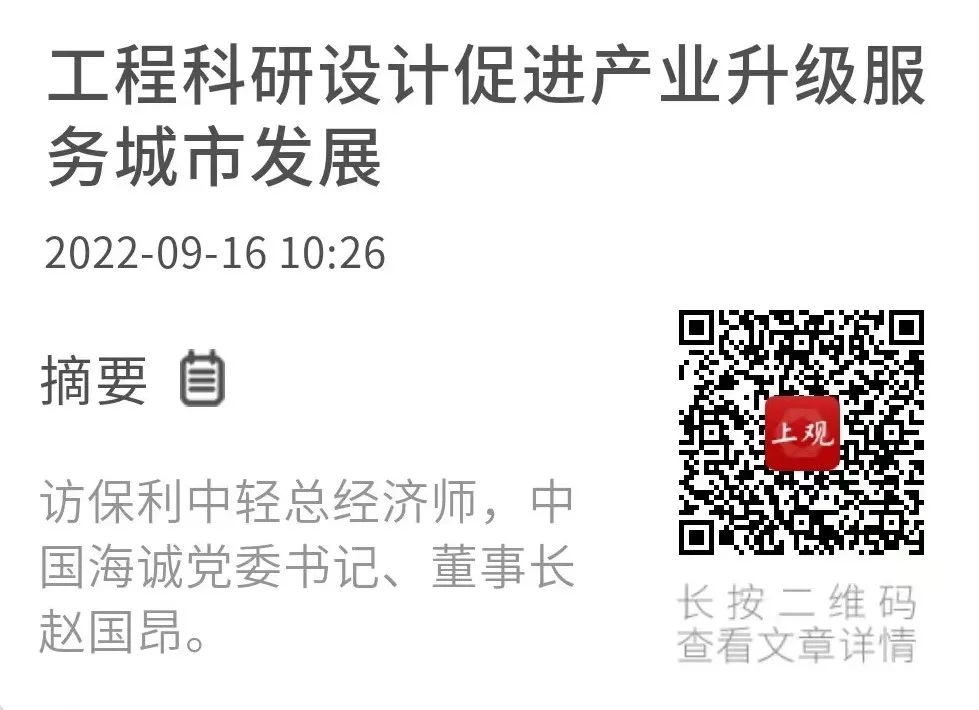 《工程科研设计促进产业升级服务城市发展——访保利中轻总经济师,best365英国在线体育党委书记、董事长赵国昂》