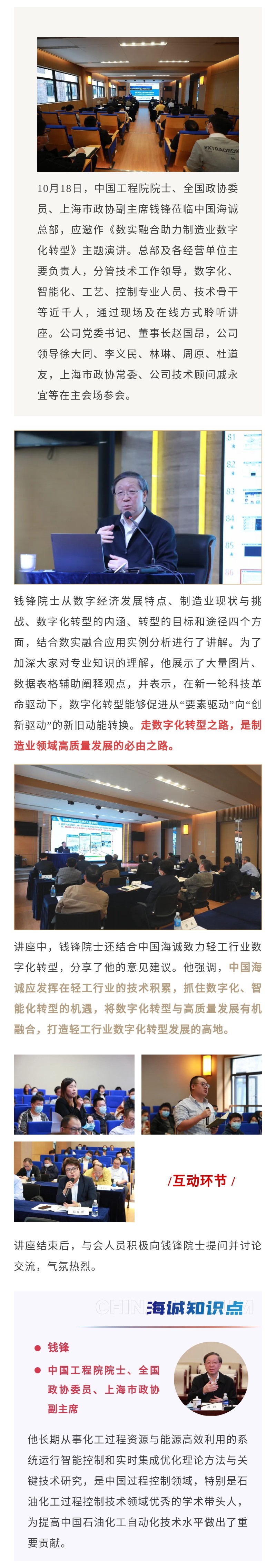 best365英国在线体育邀请钱锋院士讲授数字化转型专题培训课