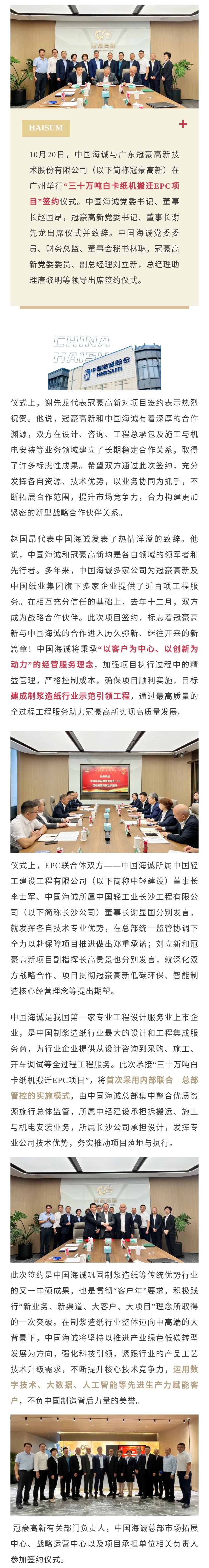 合作共赢 | 冠豪高新三十万吨白卡纸机搬迁EPC项目正式签约