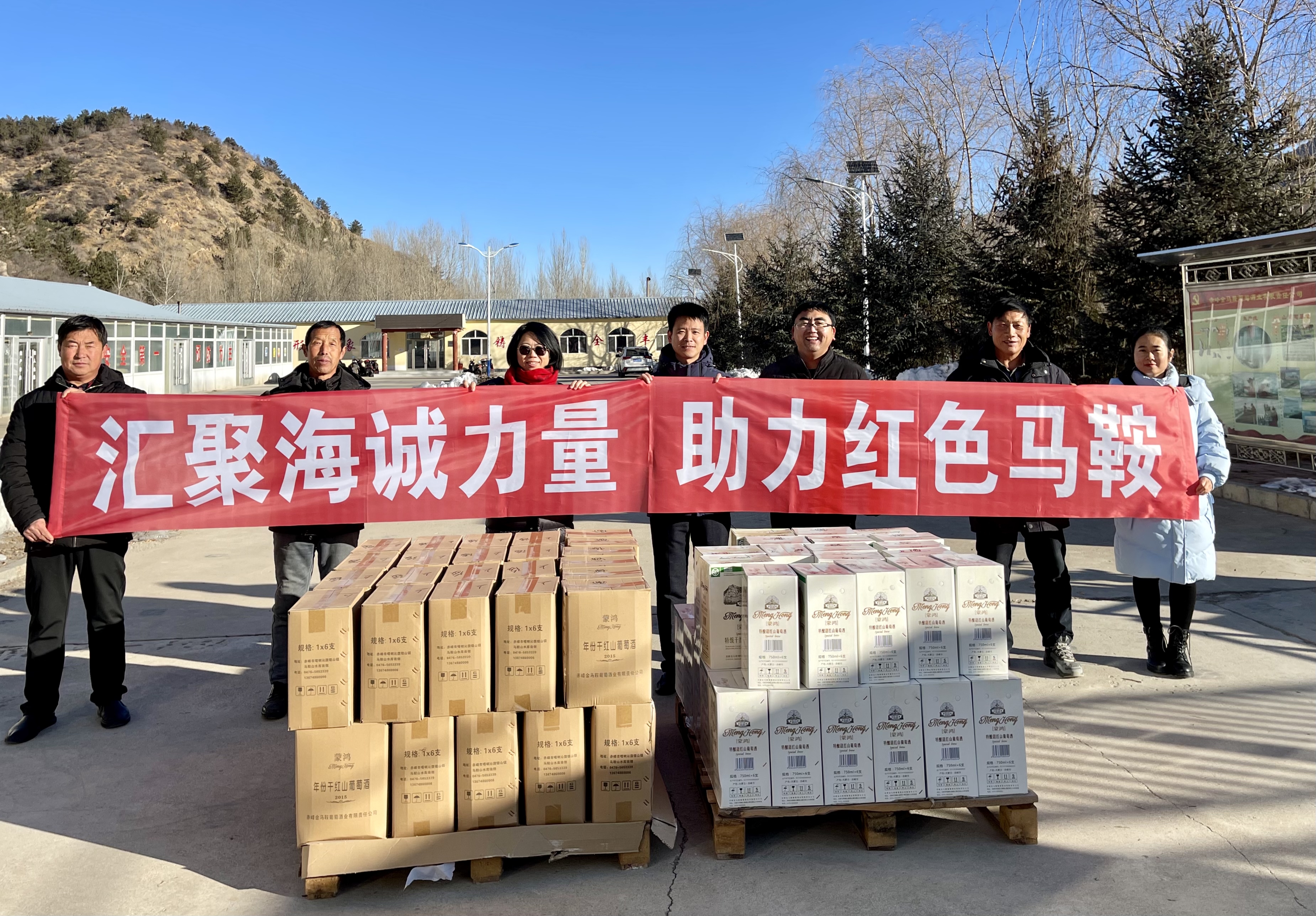 图为今年7月,公司总裁陈荣荣、副总裁陈志明专程前往内蒙古喀喇沁旗马鞍山村看望驻村干部。