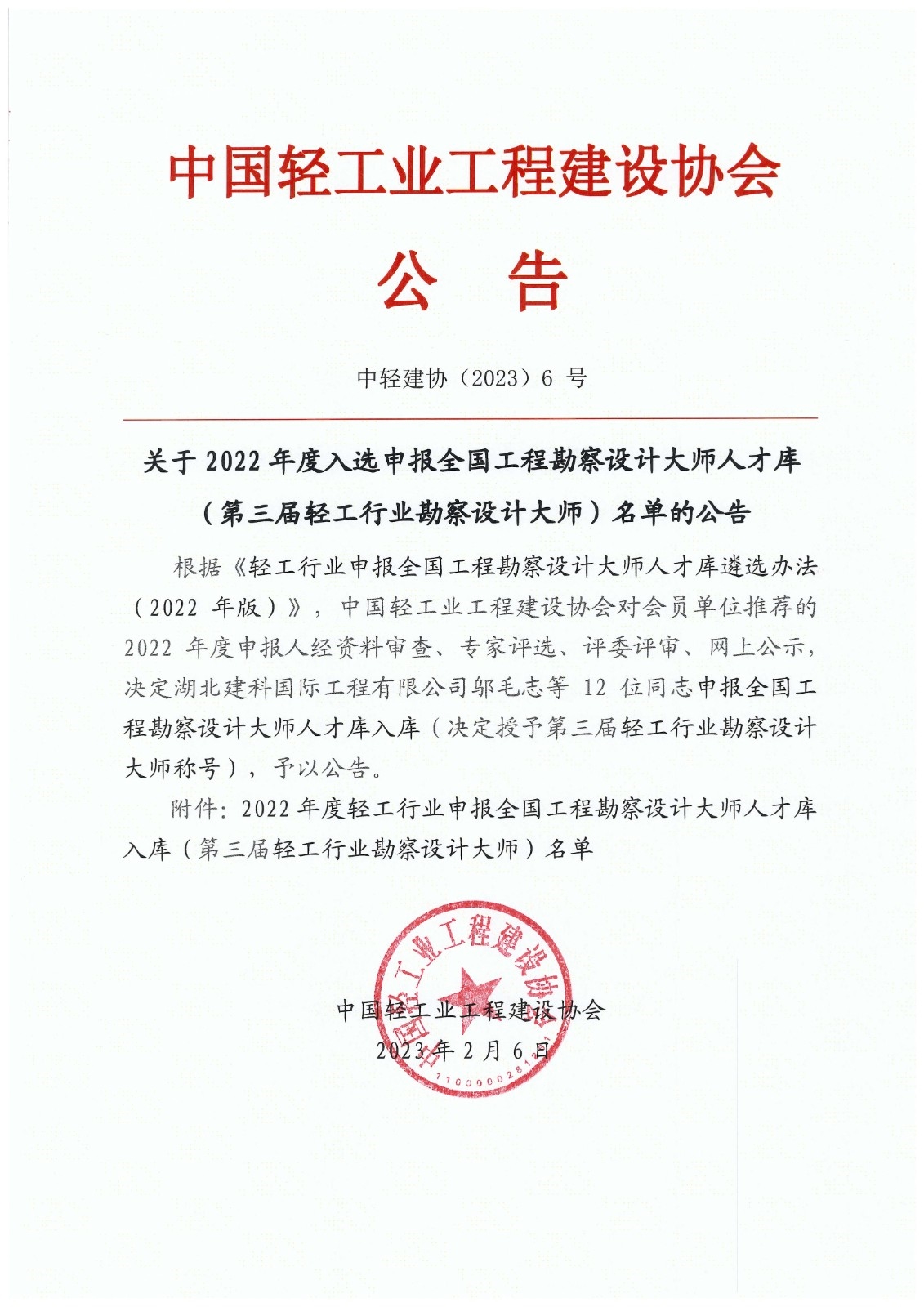 近日,中国轻工业工程建设协会发布“关于2022年度入选申报全国工程勘察设计大师人才库(第三届轻工行业勘察设计大师)名单的公告”, 12位全国轻工行业勘察设计大师名单中,best365英国在线体育及所属单位入选9位。