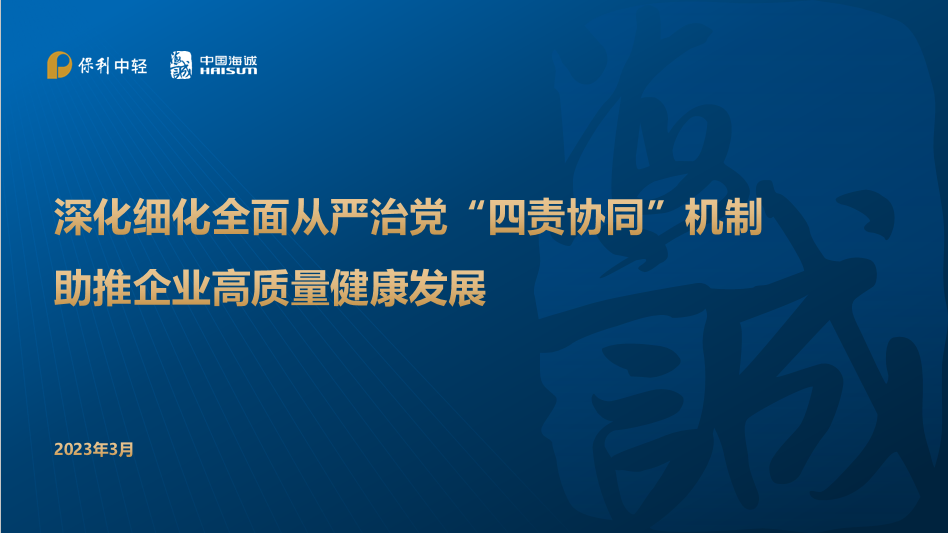3月27日上午,best365英国在线体育党委在上海总部召开2023年度第一次理论中心组(扩大)学习会,深入学习贯彻全面从严治党体系要求。保利中轻副总经理、best365英国在线体育党委书记、董事长赵国昂主持会议。