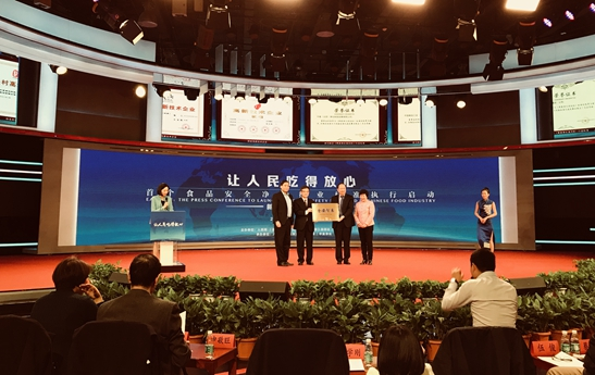 11月22日,为贯彻落实习近平总书记在十九大报告中提出的“实施食品安全战略,让人民吃得放心”的指示,深入推行行业标准,规范市场秩序。中国食品工业公司、人民网、国务院发展研究中心《经济要参》杂志社在人民网新媒体大厦一号演播厅举办了“让人民吃得放心——首个食品安全净化行业标准执行启动新闻发布会”。