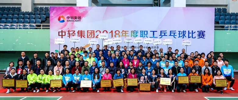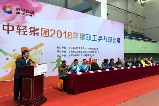 2018年11月1日至2日,中轻集团2018年度职工乒乓球比赛在西安举办。来自中轻集团总部及10家子公司共12支代表队的100多名运动员参赛。中轻集团党委委员、副总经理童云翔在比赛开、闭幕式致辞,并作为总部代表队的运动员参赛。此次活动在精心策划、积极筹备下极大丰富了广大职工的业余生活,是一次高质量的运动盛会。