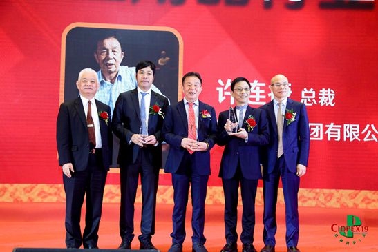 展会还特别设置了行业颁奖活动,集团公司领导张万顺、曹振雷为在行业内做出突出贡献的中顺洁柔纸业股份有限公司董事长邓颖忠,福建恒安集团有限公司董事局副主席、CEO许连捷,维达国际控股有限公司董事长李朝旺颁发了行业奠基人奖。