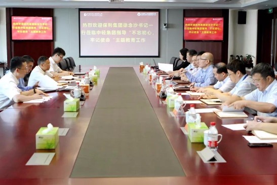 7月29日上午,保利集团党委书记、董事长徐念沙莅临中轻集团开展“不忘初心、牢记使命”主题教育调研。保利集团副总经济师罗德丕、党群工作办公室有关人员陪同调研。中轻集团领导班子成员及部门负责人共15人参加调研座谈会。座谈会由罗德丕主持。座谈会后,调研组与中轻集团领导班子成员及部门负责人个别谈话征求意见建议。