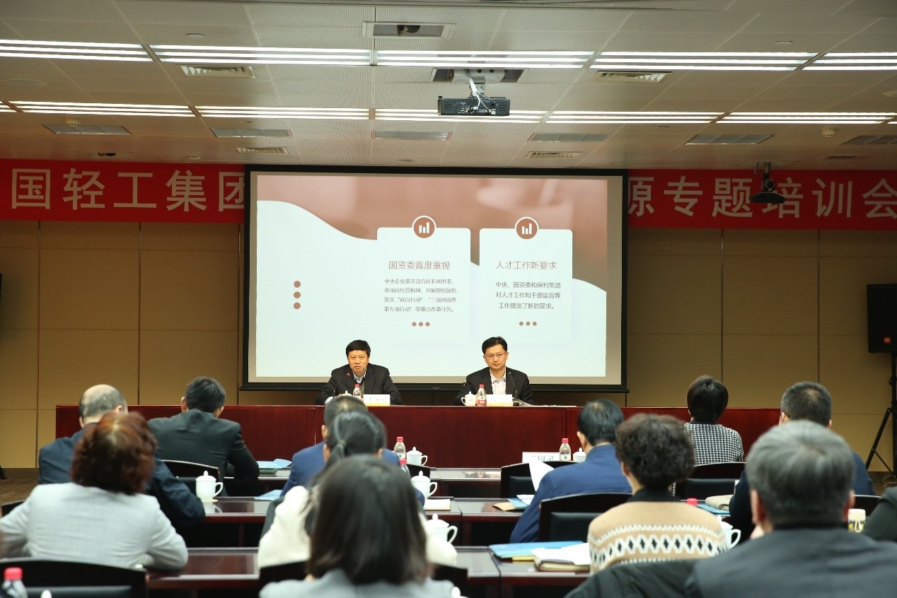 集团公司总经理助理、人力资源部主任肖金龙作《解放思想 担当实干,推进人力资源管理工作高质量发展》专题报告,传达保利集团2019年度人力资源专题培训会精神,对中轻集团2019年人力资源工作进行梳理总结,对干部选拔任用和管理监督、收入分配、人才培训和三项制度改革工作中存在问题进行实事求是的剖析,并部署下一步重点工作。