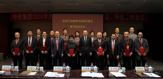 在国家科学技术奖励大会召开之际,1月9~10日,中轻集团科技工作会议在北京召开。此次会议是中轻集团进入保利集团后召开的第一次科技工作会议。会议总结中轻集团科技创新整体情况,研讨科技创新面临的挑战和机遇,部署集团公司下一阶段科技创新工作。保利集团董事长徐念沙、总经理张振高向会议发来致辞。保利集团副总经理朱铭新出席会议,宣读徐念沙、张振高的致辞,向保利中轻专家顾问委员会委员代表颁发聘书。会议采取视频会议形式,中轻集团领导班子成员、职工董事、外部董事,总部各部门负责人和各子公司相关负责人等在主会场参加会议,各子公司在全国近30个分会场共400余人参加会议。