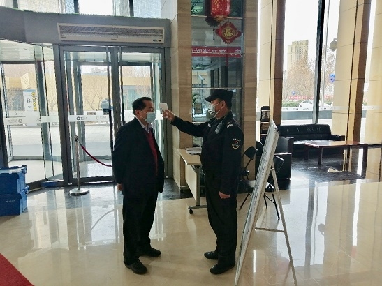 进入中轻大厦,郭建全接受体温检测