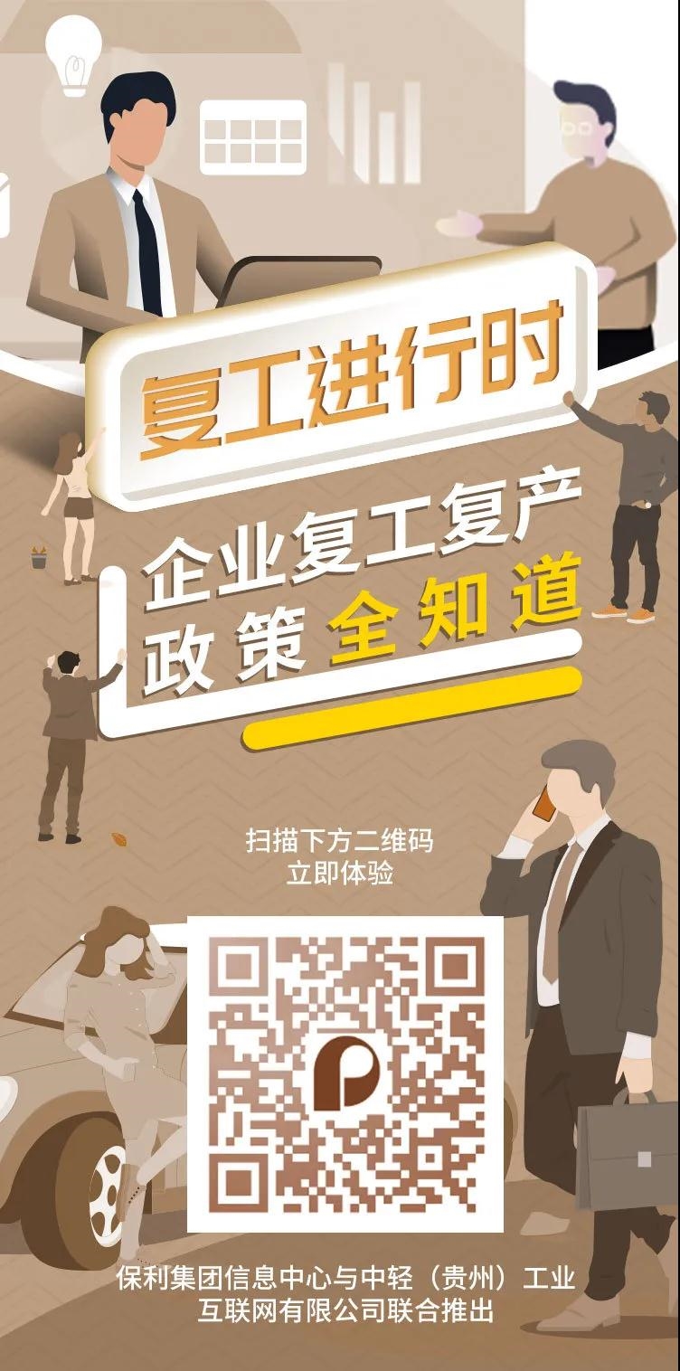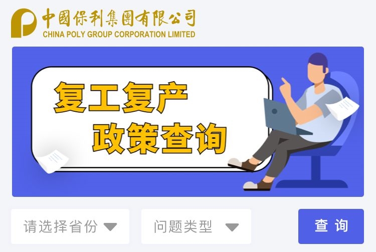 保利集团深入贯彻落实关于统筹推进疫情防控和经济社会发展工作部署会议精神,在稳抓疫情防控、全力推进集团内部复工复产的同时,充分发挥央企主力军的作用,由保利集团信息中心与中轻(贵州)工业互联网有限公司联合推出复工复产政策查询服务,为各行业企业、群众全面了解疫情防控、复工复产政策提供信息支持。
