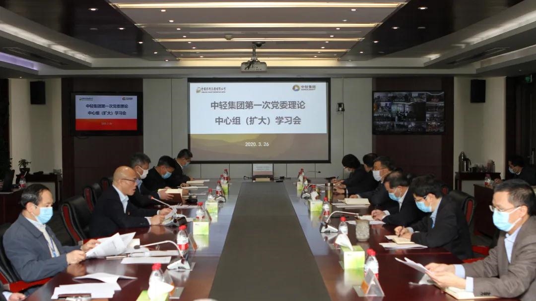 3月26日,中轻集团召开2020年度第一次党委理论中心组(扩大)学习会,会议由中轻集团党委书记、董事长张万顺主持。