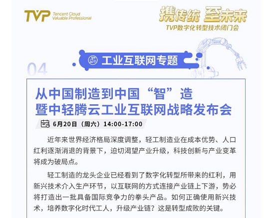 (中轻工业互联网携手腾讯云联合打造TVP数字化转型技术闭门会,暨中轻腾云工业互联网战略发布会)