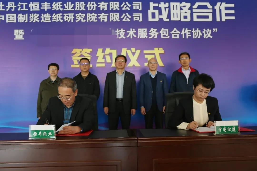 考察期间,张曦、张万顺、王珂灵一行还见证了中国造纸院与牡丹江恒丰纸业股份有限公司战略合作协议和某型产品研产销技术服务包合作协议签约仪式。