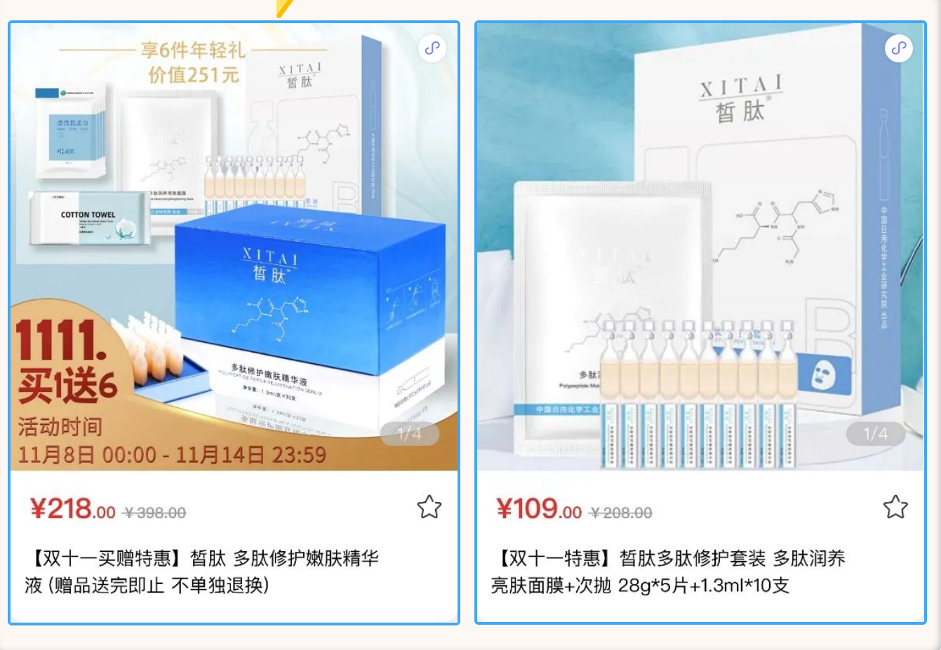 “皙肽”护肤品系列多肽润养亮肤面膜、多肽嫩肤精华液次抛,由保利中轻所属中国日用化学工业研究院研发出品,新品“双11”首发,点击下方图片即可购买。