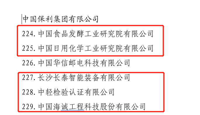 日前,国务院国资委改革办发布了“科改示范企业”名单。保利中轻所属中国食品发酵工业研究院、中国日用化学工业研究院、长沙长泰智能装备有限公司、中轻检验认证有限公司、best365英国在线体育榜上有名。