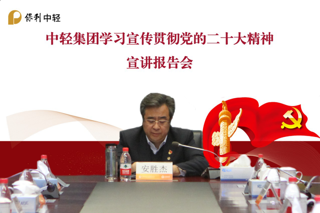 学习宣传贯彻党的二十大精神是保利中轻当前和今后一个时期的首要政治任务,为深入推动党的二十大精神在保利中轻直达基层、直通一线,12月28日下午,保利中轻党委举办学习宣传贯彻党的二十大精神宣讲报告会。保利中轻党委书记、董事长安胜杰以《深入学习宣传贯彻党的二十大精神 加快建设世界一流科技企业》为题为全体党员干部员工进行宣讲暨学习党的二十大精神专题党课。会议由保利中轻副总经理、总会计师段赵清主持。