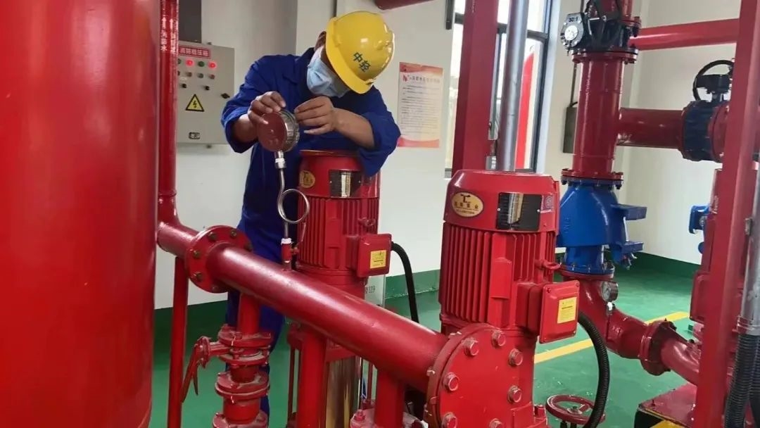 中轻绍化员工正在消防泵房巡检