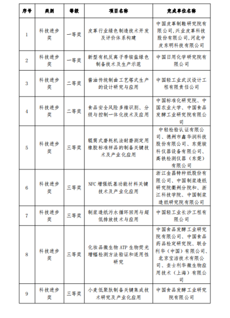保利中轻获得2022年中国轻工业联合会科技奖明细