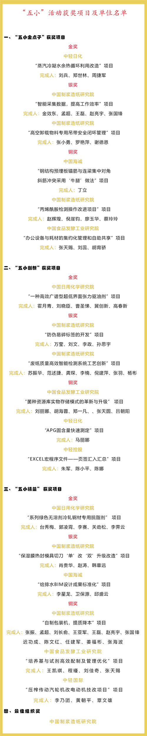 “五小精益” 金奖