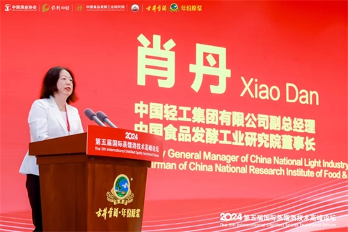 肖丹首先向出席大会的嘉宾表示热烈欢迎,向此次会议承办方安徽古井集团有限责任公司的大力支持表示诚挚谢意。她表示,蒸馏酒产业凭借其深厚的历史底蕴和广泛的市场需求,已成为现代经济发展的重要产业之一。聚焦“创新、质优”的新质生产力成为白酒行业高质量发展的新动能。中国食品院将与行业企业一道,共同推动传统酿酒行业向数字化、智能化、绿色化转型升级,助力国际蒸馏酒产业高质量发展。