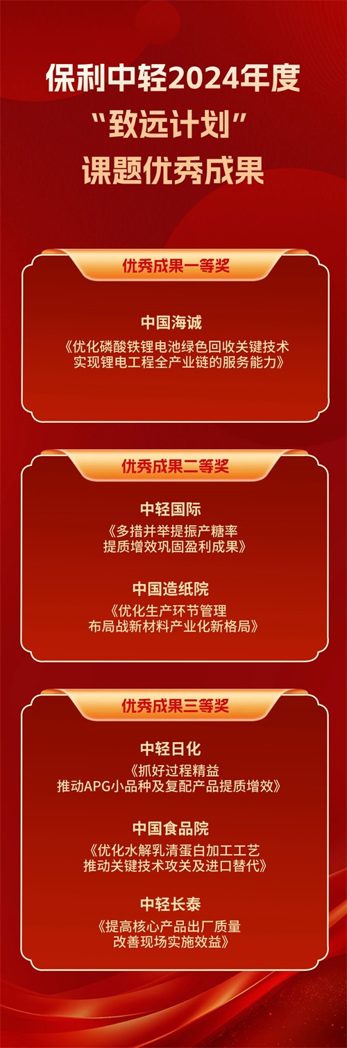 会议还表彰了保利中轻2024年度先进集体和先进生产工作者,2024年度“致远计划”优秀课题成果。