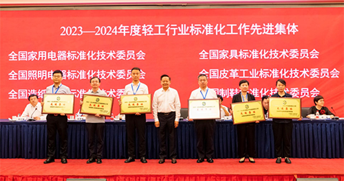 中国皮革制鞋研究院承担秘书处单位的全国制鞋标准化技术委员会、全国皮革工业标准化技术委员会和全国轻工机械标准化技术委员会皮革机械分技术委员会获得“2023—2024年度轻工行业标准化工作先进集体”荣誉称号。