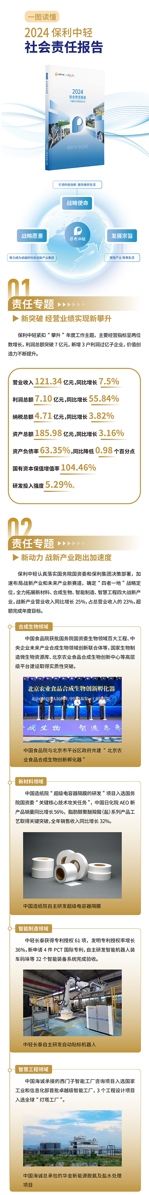 7月15日,保利中轻正式发布2024年度社会责任报告(简称“《报告》”)。《报告》全面呈现保利中轻聚焦服务国家战略,深入实施国有企业改革深化提升行动、推进传统产业转型升级、积极布局战略性新兴产业、培育发展新质生产力、守护绿水青山等方面成果成效,以实际行动诠释“美好生活领创者”责任担当。