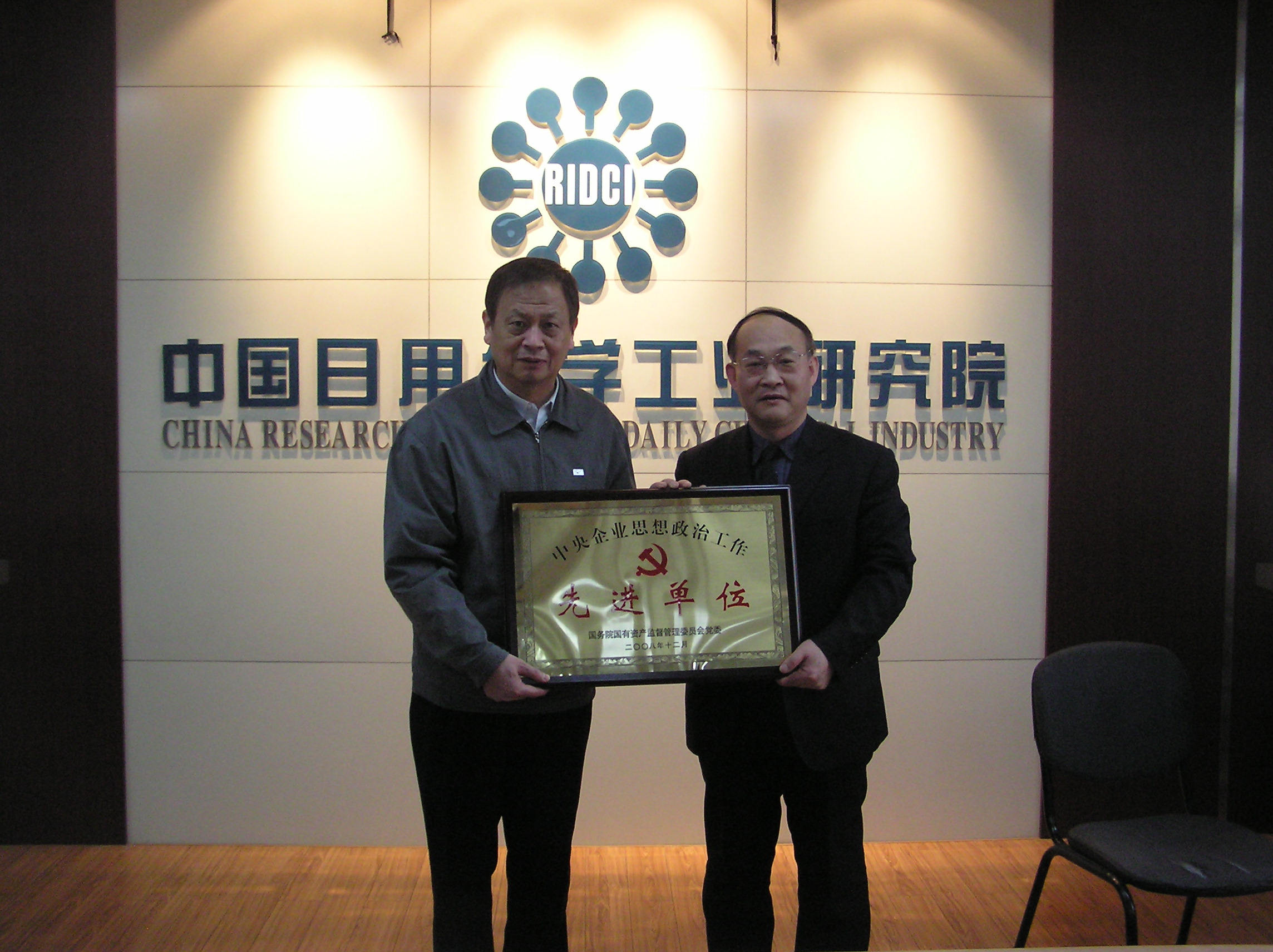 2009年,中国日用化学工业研究院荣获国务院国资委委表彰的中央企业思想政治工作先进单位。2010年2月24日,集团公司党委副书记、纪委书记梁江东同志到中国日用化学工业研究院开展工作,代表集团公司党委给中国日用化学工业研究院颁发了中央企业思想政治工作先进单位奖牌。
