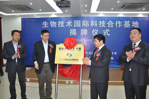 10月9日,科技部“生物技术国际科技合作基地” 揭牌仪式在集团食品发酵院隆重举行。科技部国际合作司靳晓明司长、综合与计划处张健处长、集团陈鄂生董事长、食品发酵院蔡木易院长等出席了此次揭牌仪式。靳晓明司长和陈鄂生董事长共同为生物技术国际科技合作基地揭牌。