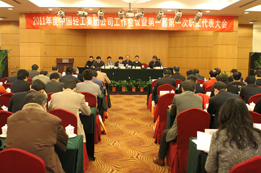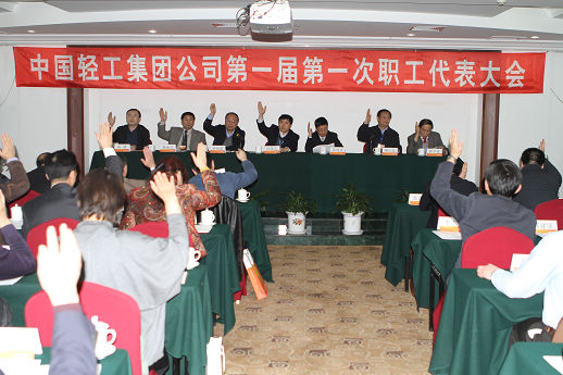 经集团公司党委批准,并经国务院国资委群工局同意,1月20日,中国轻工集团公司第一届第一次职工代表大会在京召开。大会的主要任务是:高举中国特色社会主义伟大旗帜,以邓小平理论和“三个代表”重要思想为指导,全面落实科学发展观,紧紧围绕集团公司重组整合科学发展的大局,深入贯彻落实全心全意依靠职工办企业的指导方针,以创建和谐企业为目标,充分发挥职工群众在企业改革发展中的民主参与、民主管理、民主监督的作用,弘扬“变革、求实、担当、奋进”的精神,团结动员广大职工为实现集团公司发展战略建功立业。