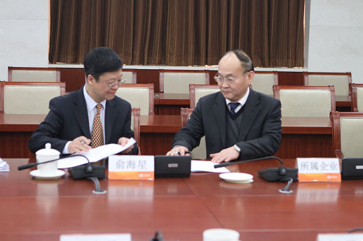 集团公司总经理俞海星与食品院党委书记董守诚签订任务合同书